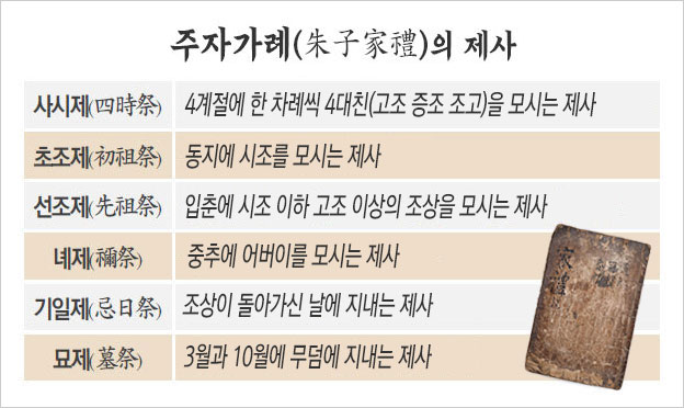 사대부의 의례였던 제사를 온 백성이 받들어 모시게 되면서 오늘날 시빗거리가 된 ‘제례의 형식’도 난만하게 꽃피었다. 모든 가치 판단의 준거로서의 중화(中華)에 대한 짝사랑은 정작 종주국보다 더 완고하고 경직된 형식주의가 이 땅을 지배하게 만든 것이다.[관련 글 : 차례상에 ‘홍동백서’는 없다?(2015/09/27)]