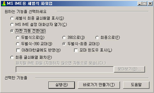 ※ 주의: 이 프로그램을 사용하기 전에, MS IME 설정 대화상자를 직접 이용해서 수동으로 글자판 전환을 한두 번 정도 해 놓으시길 권합니다.