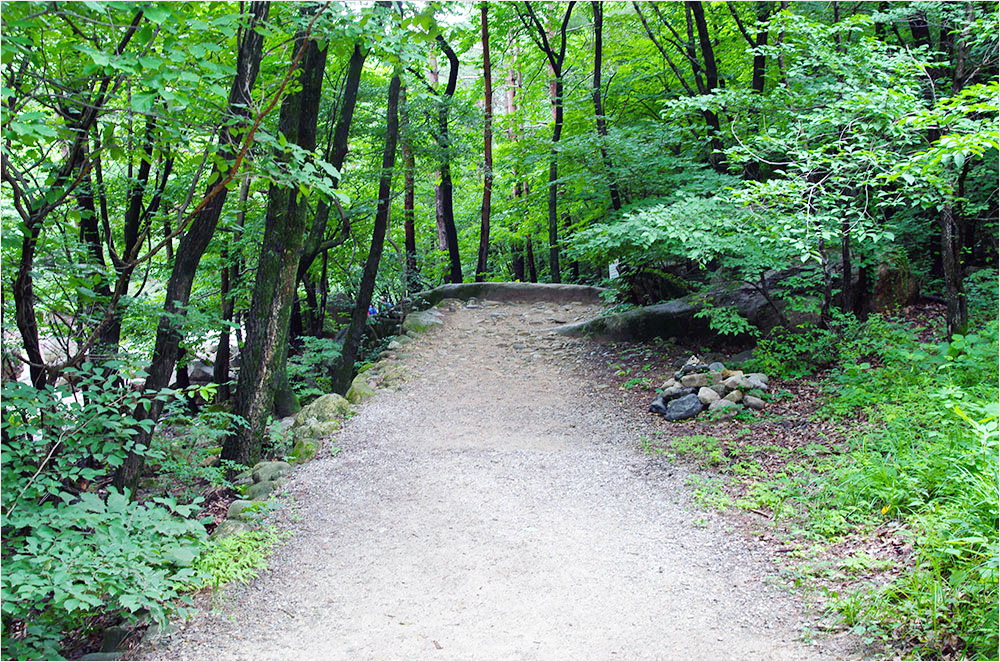 절집을 떠나 다시 산을 오른다. 빽빽한 숲 그늘을 따라 오르는 산길이 시원하고 넓다. 짙은 녹음이 연출해 주는 산의 체취가 코끝에 희미하게 와 닿는다. 그제야 정말 너무 오랜만에 산을 찾았다는 사실을 깨닫는다. 나는 일행들을 먼저 보내고 천천히 사진을 찍으며 산으로 들어갔다.