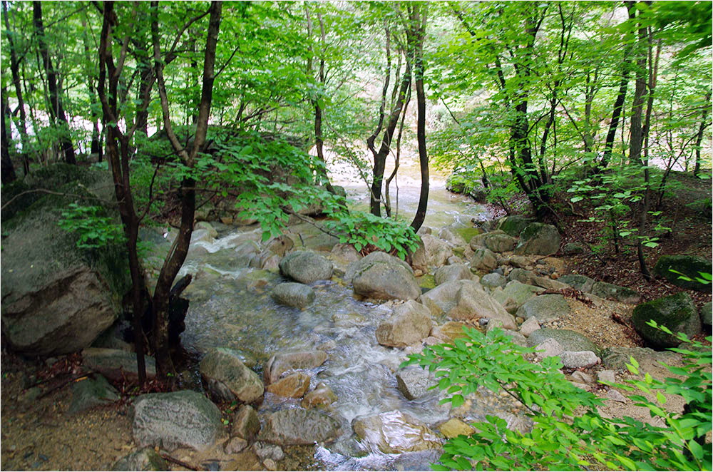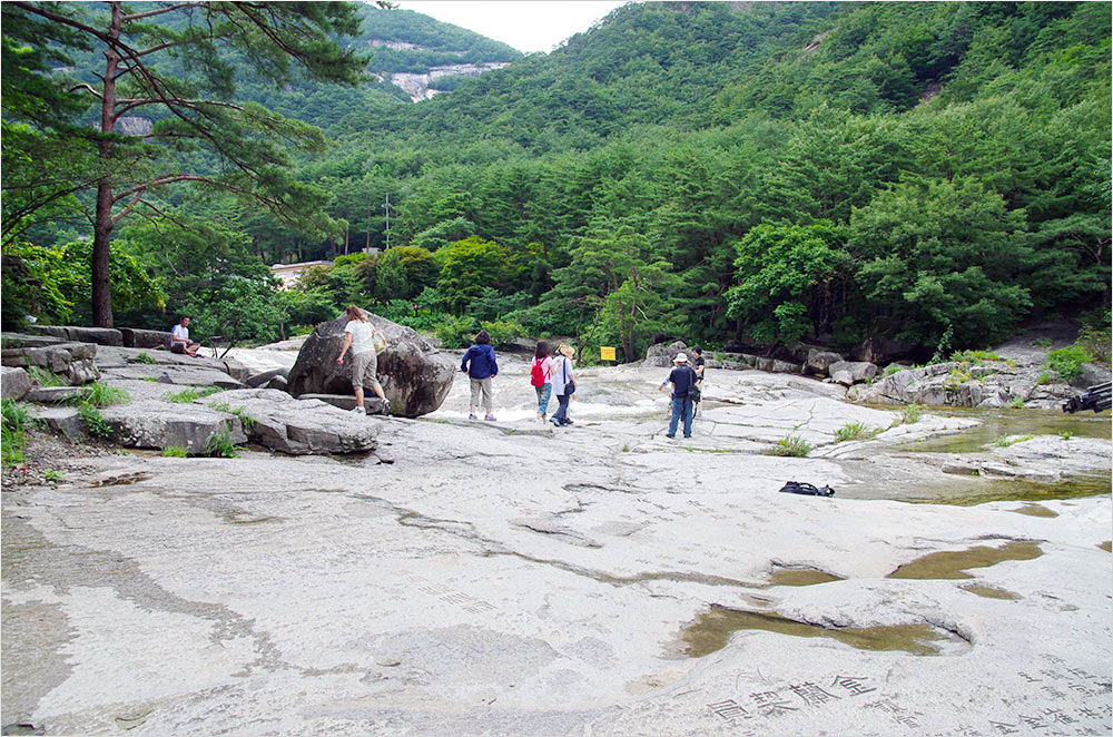 여정을 고려했으므로 모두 간편한 여행복 차림에다 운동화나 캐주얼 구두를 신고 있었다. 정작 무심코 계곡 안으로 들어서면서도 일행 가운데 산행을 한다고 여긴 이는 없었을 것이다. 무릉반석과 계곡 옆의 금란정을 곁눈질하며 우리는 무심코 두타산으로 틈입했다고 하는 편이 알맞을지 모르겠다.