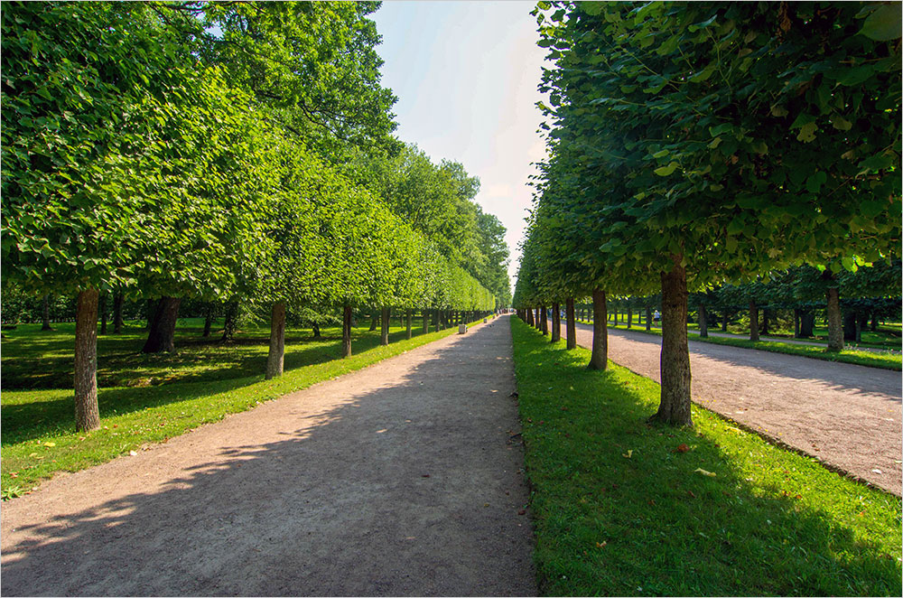 선착장에서 궁전으로 오르는 일직선의 운하 양옆으로는 크고 아름다운 숲이 이어졌다. 그 그늘을 밟는 것만으로도 우리의 여정은 충분한 보상을 받는 느낌이었다. 물길의 끝에 대궁전이 버티고 섰는데, 그 앞의 아랫정원에는 세 개의 폭포가 있는 수영장이 있고, 수영장 안에는 삼손 조각상과 64개의 분수가 설치되어 있었다.