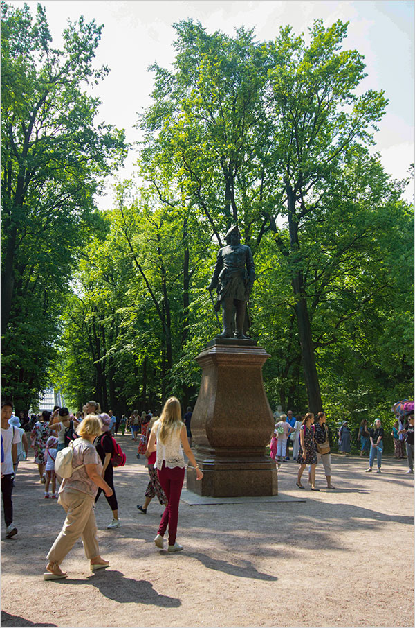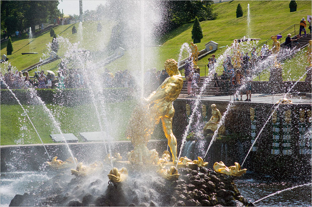 그리스 신화의 신과 영웅에 둘러싸인 인물이 뜬금없이 삼손인 분수는 표트르 대제가 스웨덴과의 북방전쟁의 종지부를 찍는 ‘폴타바 전투’ 승리를 기념하는 시설이다. 승전일이 러시아 정교의 ‘성 삼손의 날’이어서 기념 분수에 삼손이 등장한 것이라고 한다.