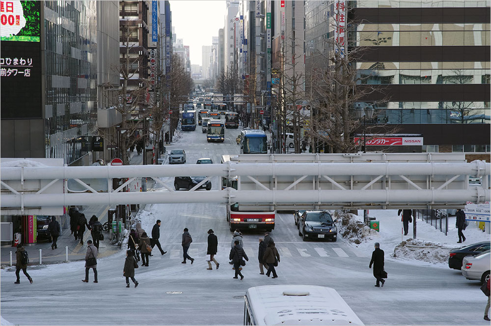 거리는 반듯한 데다 깨끗했고, 사람들은 서두르지 않고 차분하게 거리를 지나다녔다. 우회전 신호에 헷갈리고 내비게이션을 따라 갈 지(之) 자 운행을 해도 경적을 울리는 이들이 거의 없었다. 무엇보다도 거리에 주차된 차가 전혀 없었던 게 오래 기억에 남았다. 그러나 삿포로에 두드러진 것은 역시 ‘눈’이었다.