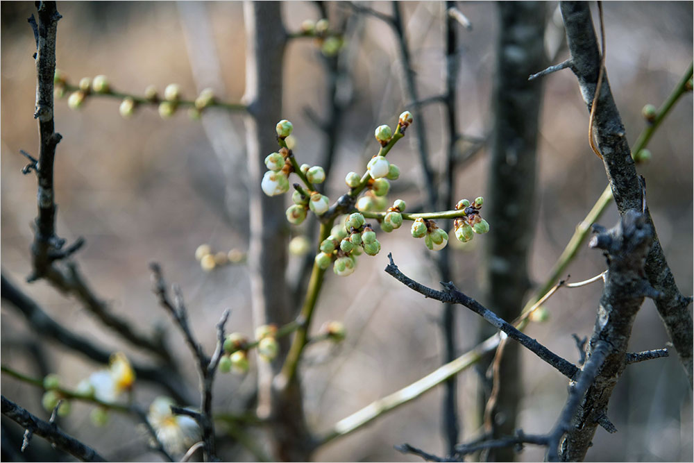 그걸 깨우친 것은 2월 하순에 우연히 체육공원을 지나다가 추위에 오그라든 매화를 발견하면서였다. 맞다, 내가 모르는 새에 벌써 산수유와 매화는 피고 있었구나, 하고 생각하면서 나는 마치 소문난 잔칫상에서 밀려난 것처럼 좀 서운하고 억울했다. 2월 20일에 일부러 찾아간 동네 매화는 아직 꽃망울을 터뜨리지 않고 있었기 때문이다.