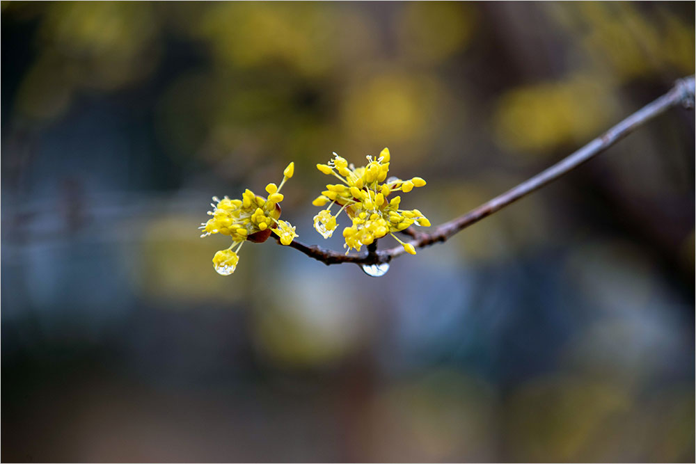 3월 2일에는 시립 중앙도서관 뜰에서 전날 내린 비를 머금고 있는 산수유를 몇 장 카메라에 담았다. 마치 왕관 모양으로 퍼지는 꽃차례[花序]도 보기에 좋다. 그러고 보니 의성에서 열리는 산수유 축제는 올해도 생략되는지 어떤지 갑자기 궁금해진다. 낯선 바이러스가 사람들의 삶을 옴짝달싹 못하게 바꾸어 놓았다.