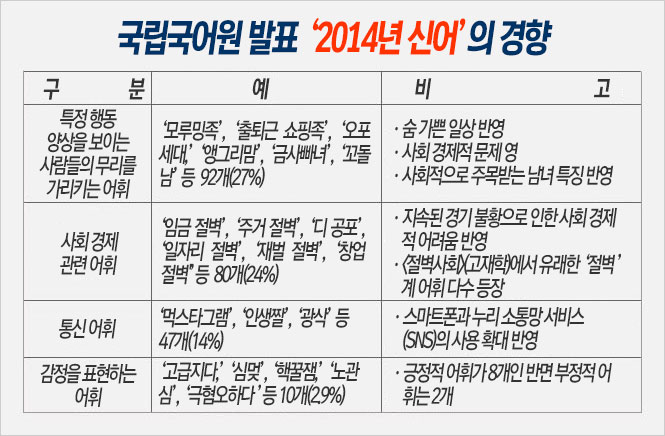 국립국어원 발표 2014년 신어