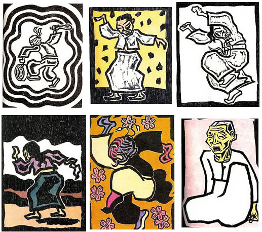 뒷날 민중 판화의 전형으로 평가받게 되는 그의 목판화의 터치는 거칠고 투박했다. 대신 ‘간결하고 힘찬 선묘(線描)와 화면을 꽉 채운 밀도 높은 구성’으로 창조한 ‘개성적 도상’(이상 김미정)이었다.