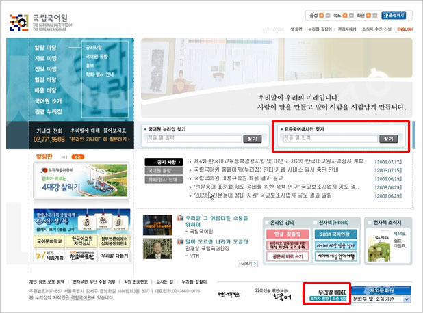초·중·고등학생들은 배움터와 글쓰기 교실, 어문 규정, 철자검사기 등을 통해 바른 우리 말글살이의 바탕을 다질 수 있고, 일반인은 자신이 쓴 글의 잘못이나 일상생활에서 자주 범하는 오류를 교정받을 수 있습니다.”