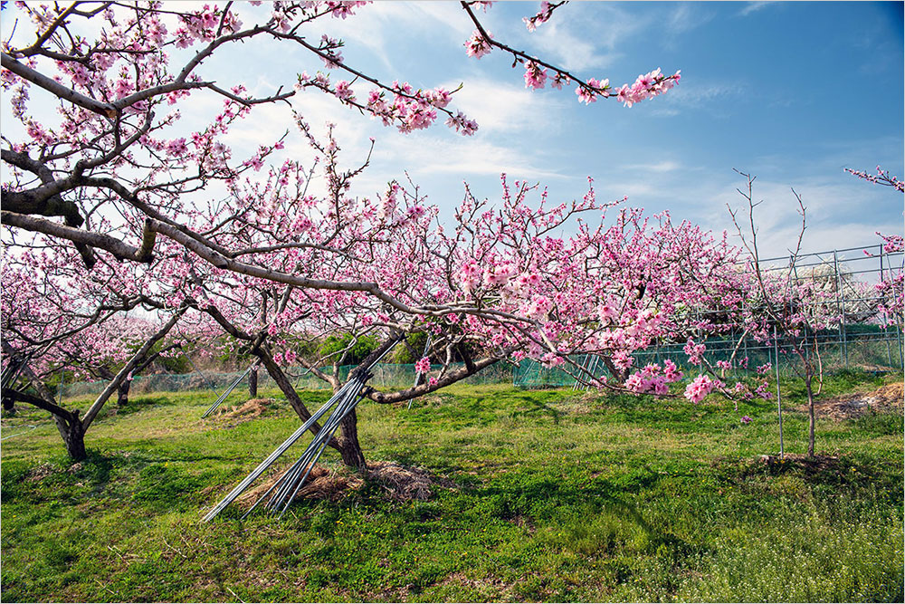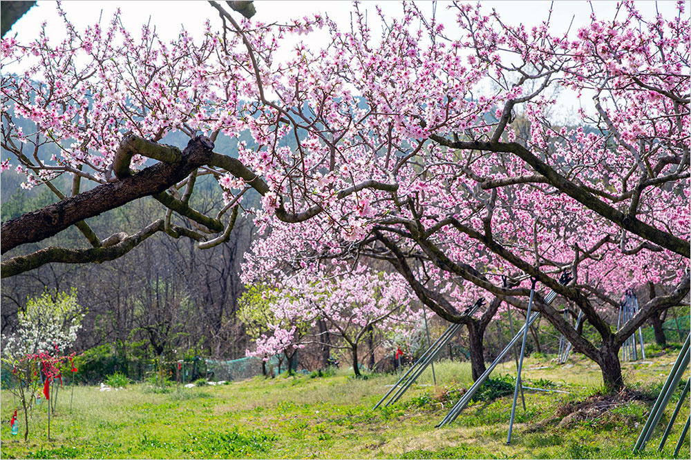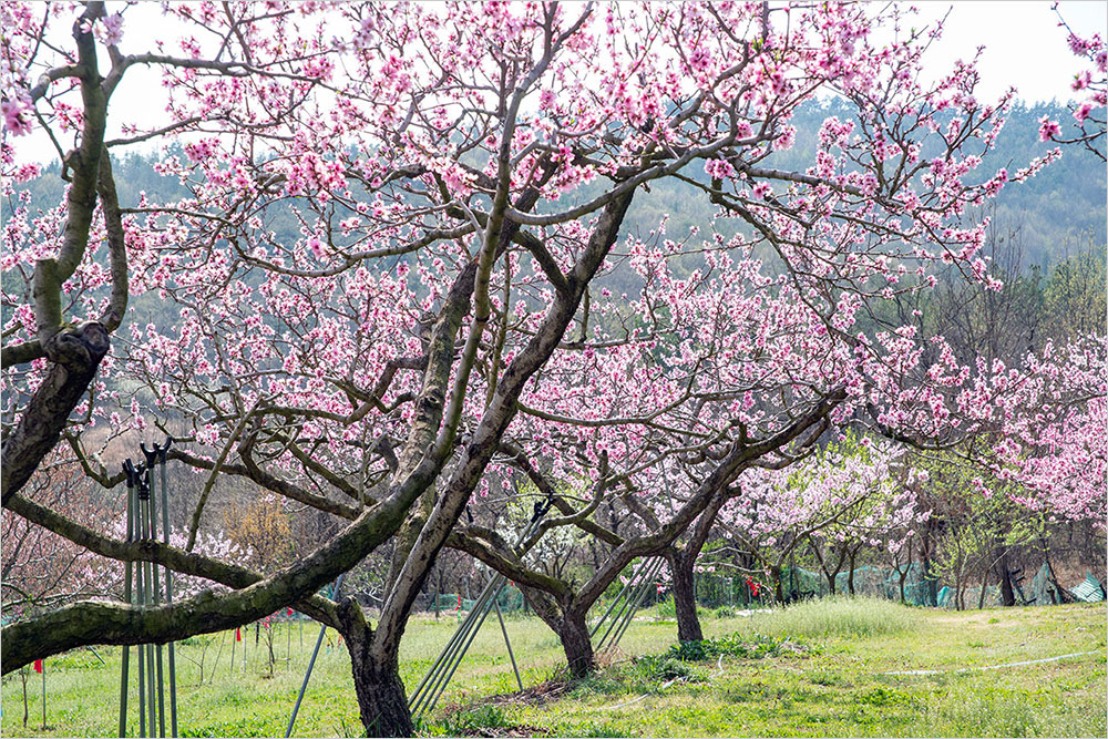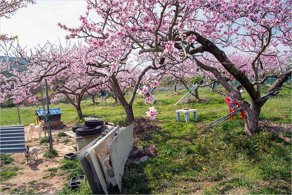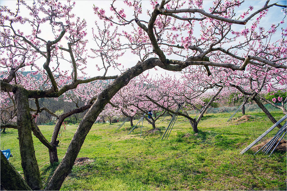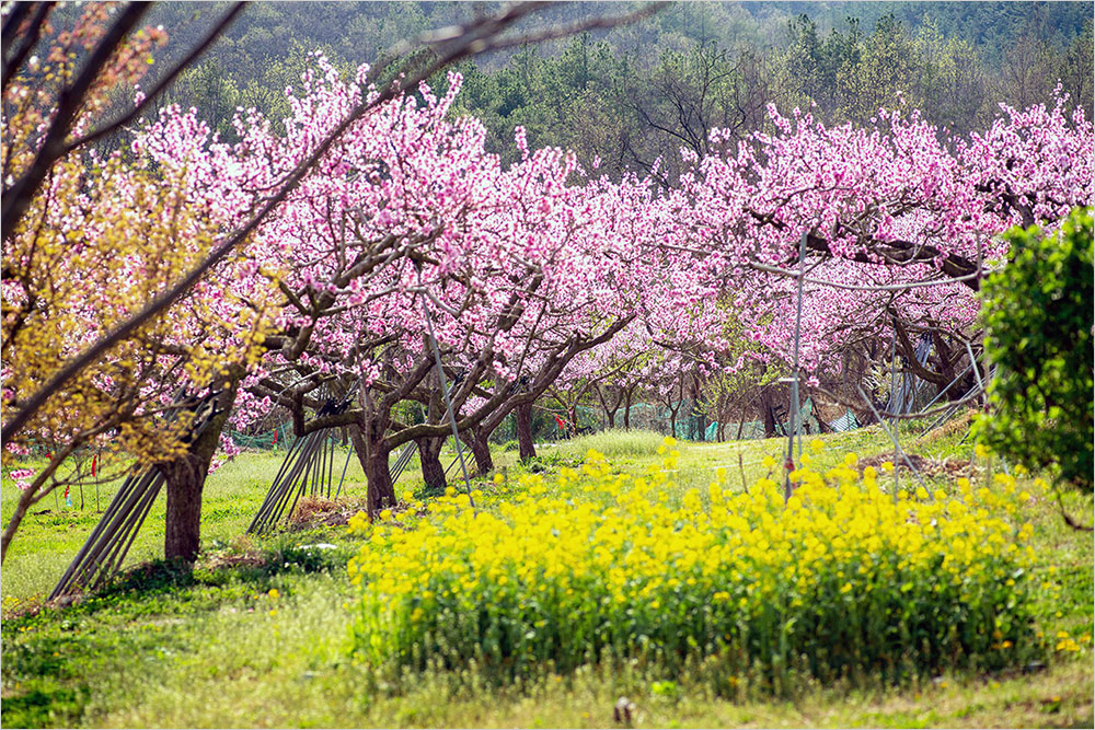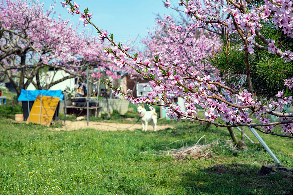 구부정하게 굽은 복숭아나무가 다닥다닥 꽃을 매달고 있는 밭에는 연분홍 온기가 가득했다. 복사꽃은 가까이 볼 때와 거리를 두고 바라볼 때가 전혀 다른 색감으로 느껴진다. 가까이서 볼 때는 점잖은 연분홍빛인데, 조금만 물러나 바라보면 진분홍으로 바뀌는 까닭이다. 그건 곱다는 느낌을 넘어 선정적인 인상으로 다가온다. ‘복숭아 도’ 자를 쓰는 ‘도색(桃色)’의 쓰임새는 거기서 비롯하는 것이다.