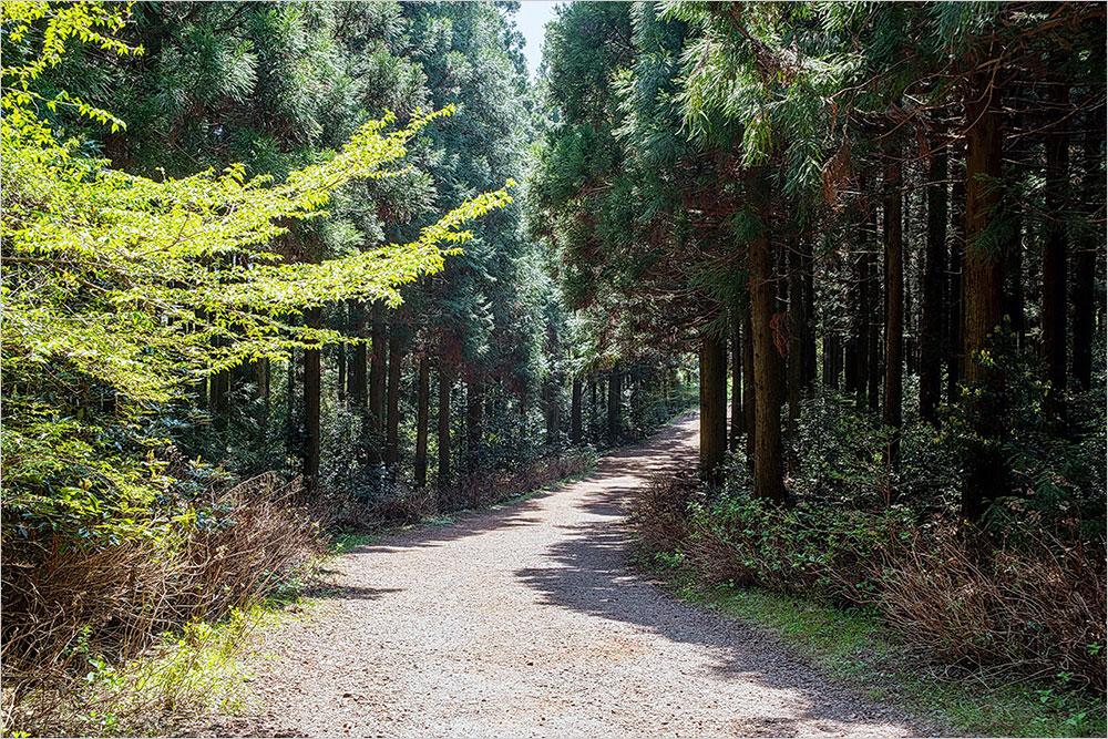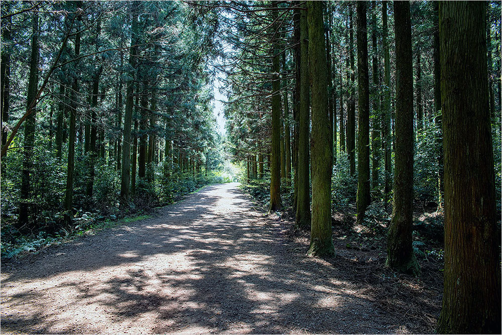사려니숲길의 입구는 현무암 정주석을 양옆에 박은 정낭(제주도 대문) 형식이었다. 산으로 드는 꽤 넓은 길 양옆으로 거대한 삼나무숲이 펼쳐져 있었다. 일직선으로 곧게 자라난 삼나무가 하늘이 보이지 않을 만큼 빽빽하게 들어찬 숲속은 마치 현실과 무관한 별천지 같았다.