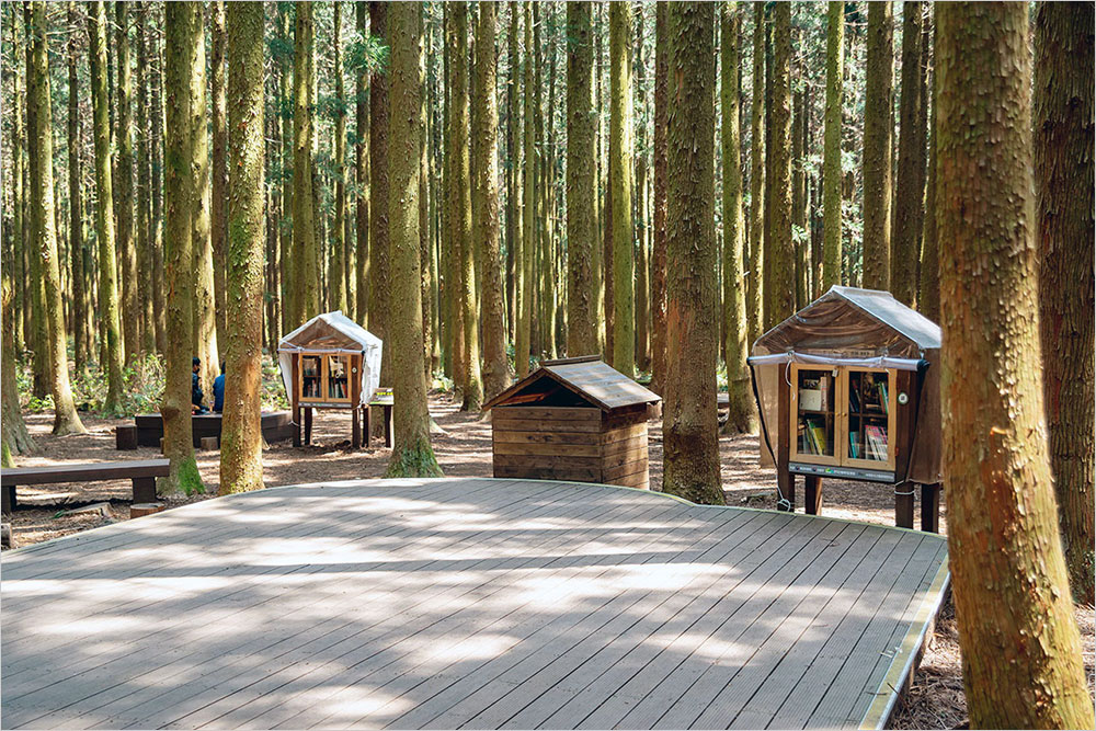 반대쪽 숲의 미로 숲길에는 공연장인 ‘열린 무대’와 휴식하면서 책을 읽을 수 있는 ‘숲속 책장’도 있었다. 데크 길이 끝나는 데서부터 비자림로의 사려니숲길 입·출구로 가는 10km에 이르는 넓고 완만한 길이 펼쳐진다. 이 숲길을 채운 나무는 삼나무뿐 아니라 편백, 졸참나무, 서어나무, 산딸나무, 쥐똥나무, 때죽나무, 단풍나무, 참꽃나무 등 다양한 수종이다.