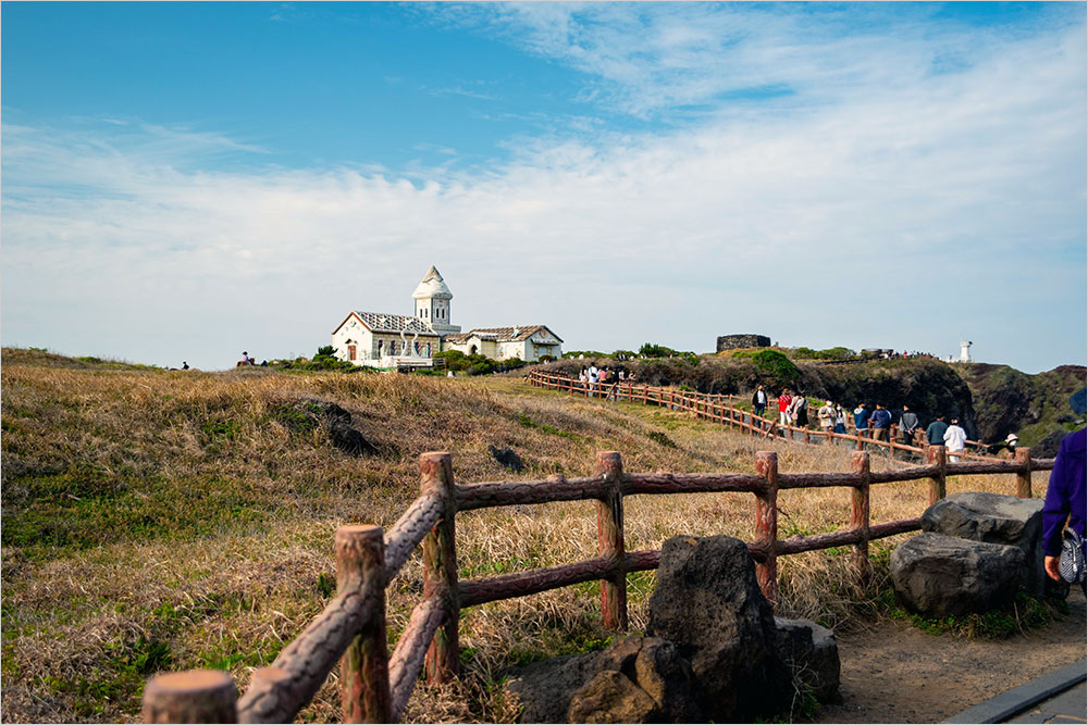 시멘트로 만든 목재 모양의 울타리를 따라 까만 돌판을 깐, 완만한 물매의 길을 오르면 왼쪽에 새파란 하늘을 배경으로 동화에나 나올 법한 질감의 건물 하나가 떠오른다. 한때 인기 텔레비전 드라마였던 <올인>에 성당으로 등장했던 건물을 개축하여 <헨젤과 그레텔> 동화 속 ‘과자의 집’이 되었다고 한다.