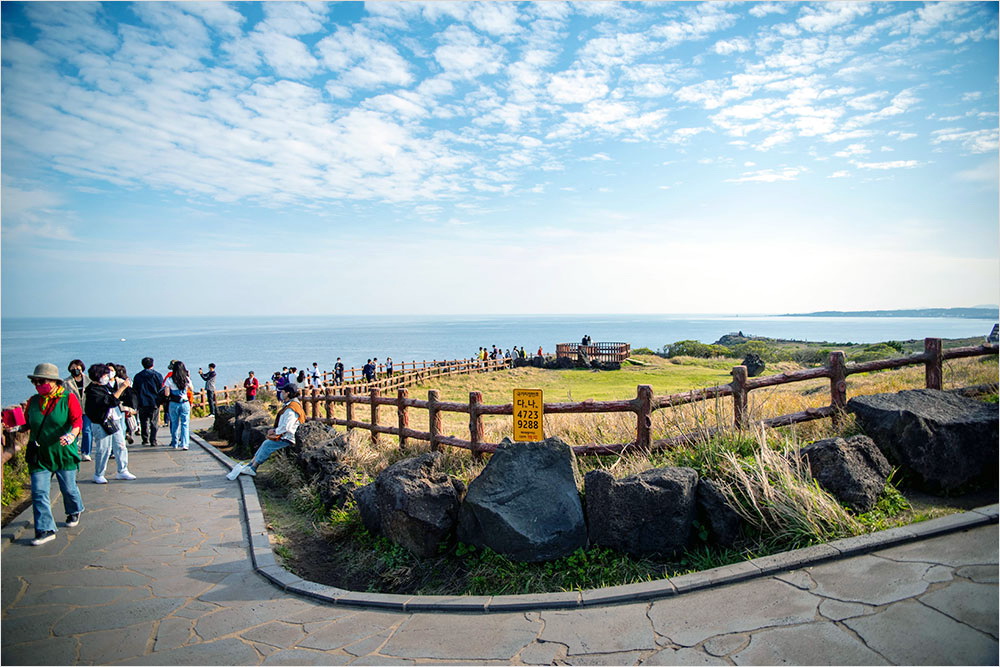 저 멀리 등대로 오르는 철계단에 사람들이 줄을 이었다. 거기 오르면 섭지코지의 해안 절경이 펼쳐진다지만, 우리는 먼빛으로만 해안을 훑고 나서 발길을 돌렸다. 이런 풍경을 제대로 즐기려면 시간 따위에 얽매이지 않고, 느긋하게 돌아보아야 한다. 그러나 아무리 자유여행이라 하여도 여정 없이 이루어지지 않으니, 시간은 그 여행의 방해꾼이다.
