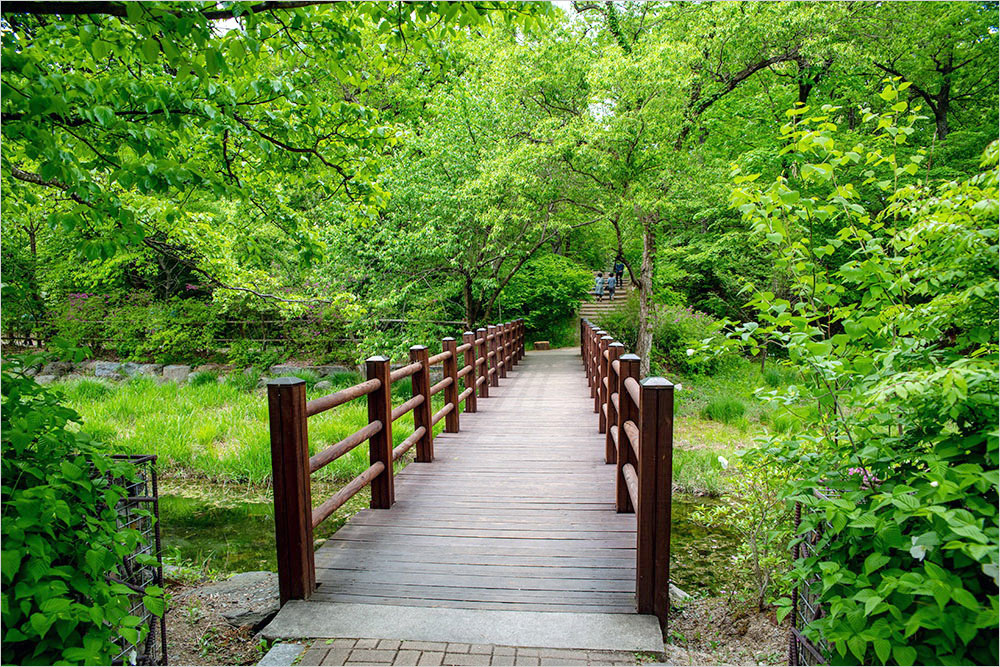 우리는 안내도에 얽매이지 않고 곳곳에 서 있는 전시원 이름과 이정표를 가늠자 삼아 천천히 수목원을 거닐기 시작했다. 눈을 부릅뜨고 풍경을 살필 필요도, 바삐 길을 서두를 필요도, 반드시 찾아야 할 곳도 없다. 그게 숲속에 든 사람들이 저도 몰래 익히는 느긋한 여유다. 어딜 가도 비슷하게 펼쳐지는 푸른 숲에 온전히 마음과 몸을 맡기면 되는 것이다.