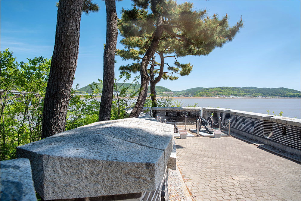 1977년 복원한 돈대 아래는 강화대교가 지나는 강화해협이었다. ‘염하(鹽河 : 짠 물)라고도 불리는 김포와 강화의 경계 수역인 강화해협은 바다라기보다는 강처럼 보였다. 돈대에 설치된 대포 몇 문으로 제국의 침공을 막아내던 역사를 환기하기엔 역부족이었다.