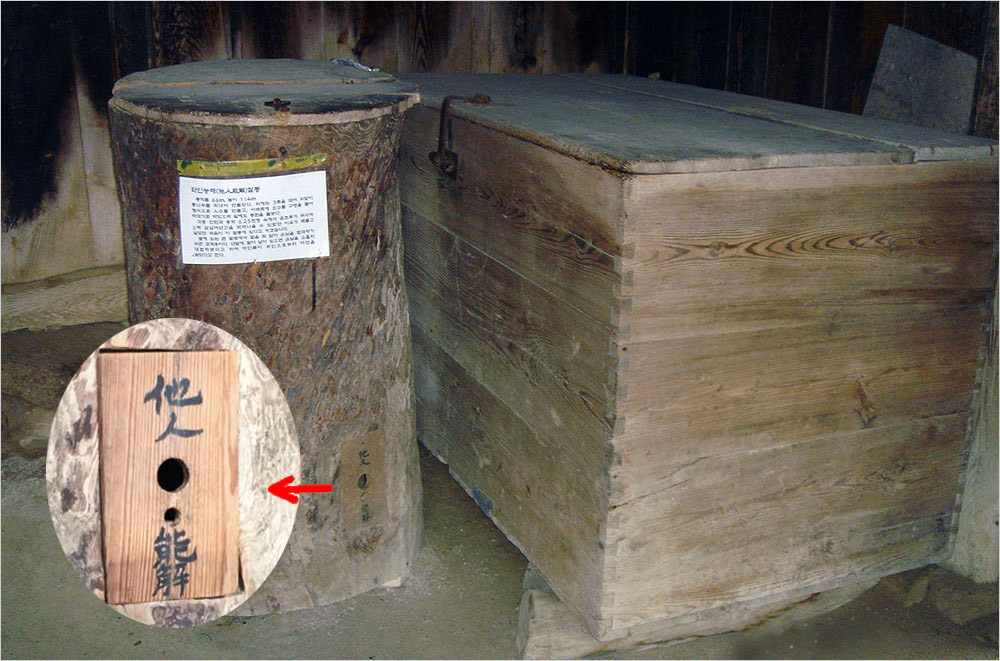 운조루를 사람들이 입에 올려 우러르는 것은 안채로 들어가는 중문에 갖다 놓은 ‘타인능해(他人能解)’의 쌀독 덕분이다. 운조루에서는 마을의 가난한 사람이 끼니를 이을 수 없을 때 쌀 두 가마니 반이 들어가는 나무 독에 마개를 돌려 쌀을 빼다가 밥을 짓도록 허용했다. 마을의 가난한 이가 끼닛거리가 떨어지면 이 쌀독을 열어 쌀을 퍼 갈 수 있게 한 것이다.