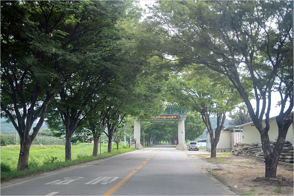태조산 도리사(桃李寺) 일주문은 도리사 2Km 앞 아스팔트 길 위에 세워져 있다. 거대한 콘크리트로 지은 이 산문에는 금빛으로 쓴 ‘해동 최초 가람 성지 태조산 도리사’란 현판이 달려 있다. 도리사는 거기서 느티나무 가로숫길로 산길을 십여 분 더 가야 있다.