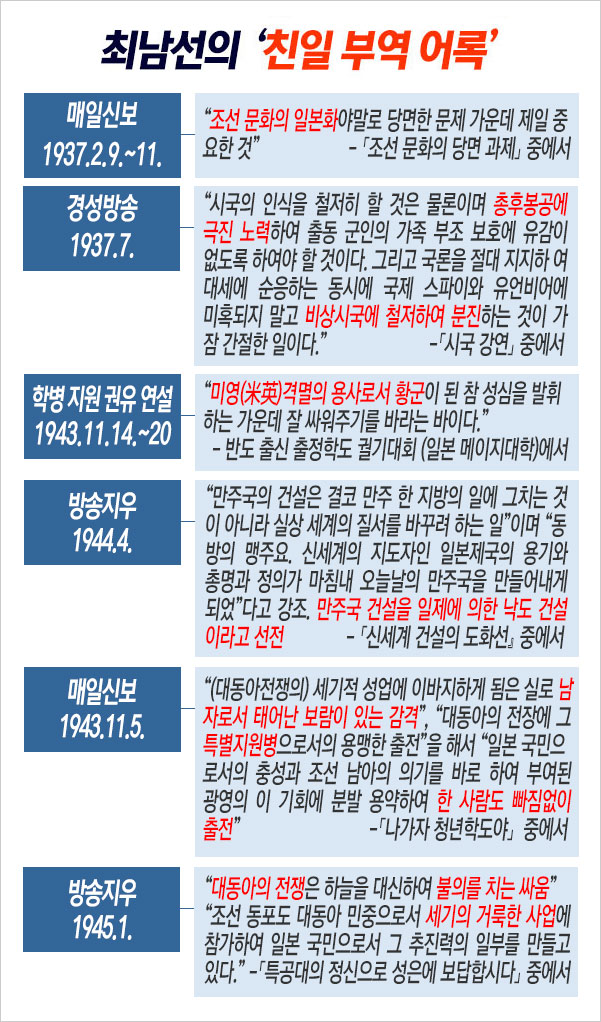 “최남선과 이광수는 친일 행적만 모아도 전집을 낼 수 있을 정도로 의심의 여지없는 ‘민족의 죄인’.”