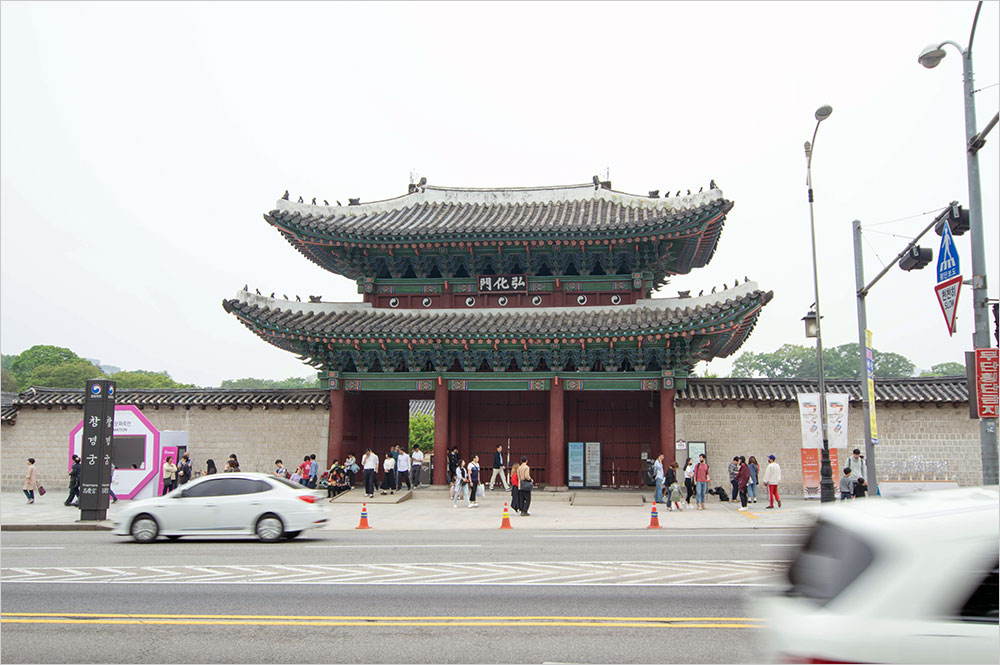덕수궁을 나와 남대문시장에서 저녁을 먹고 창경궁 야간 개장 시간 7시에 맞추어 홍화문(弘化門) 앞에 닿았다. 뉴스로 고궁의 야간 개장 소식을 듣긴 했지만, 고궁을 밤에 찾게 되니 은근히 그 밤 풍경이 자못 기대됐다. 디에스엘아르(DSLR) 카메라를 준비했지만, 어두워지면 감도(ISO)를 높여서 찍으려고 플래시는 가져오지 않았다.