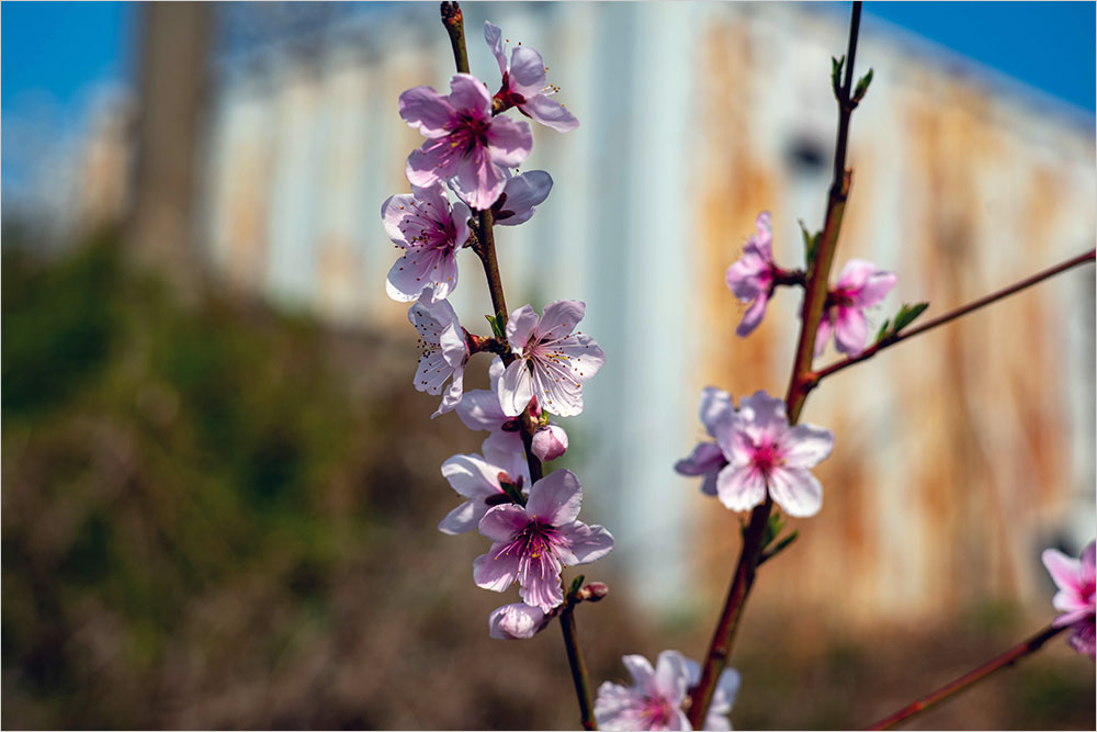 먼 산에 희끗희끗 남은 흰 꽃 무리는 뒤늦게 피어난 산벚꽃이다. 이미 사람들을 꾀게 한 벚꽃 단지는 잎을 떨구고 빨간 꽃받침만 남아 허망한 절정의 뒤끝을 보여주고 있다. 그 쓸쓸한 틈새를 메우는 건 예년 같으면 이제 겨우 꽃망울을 터뜨릴 차례인 복사꽃이다.
