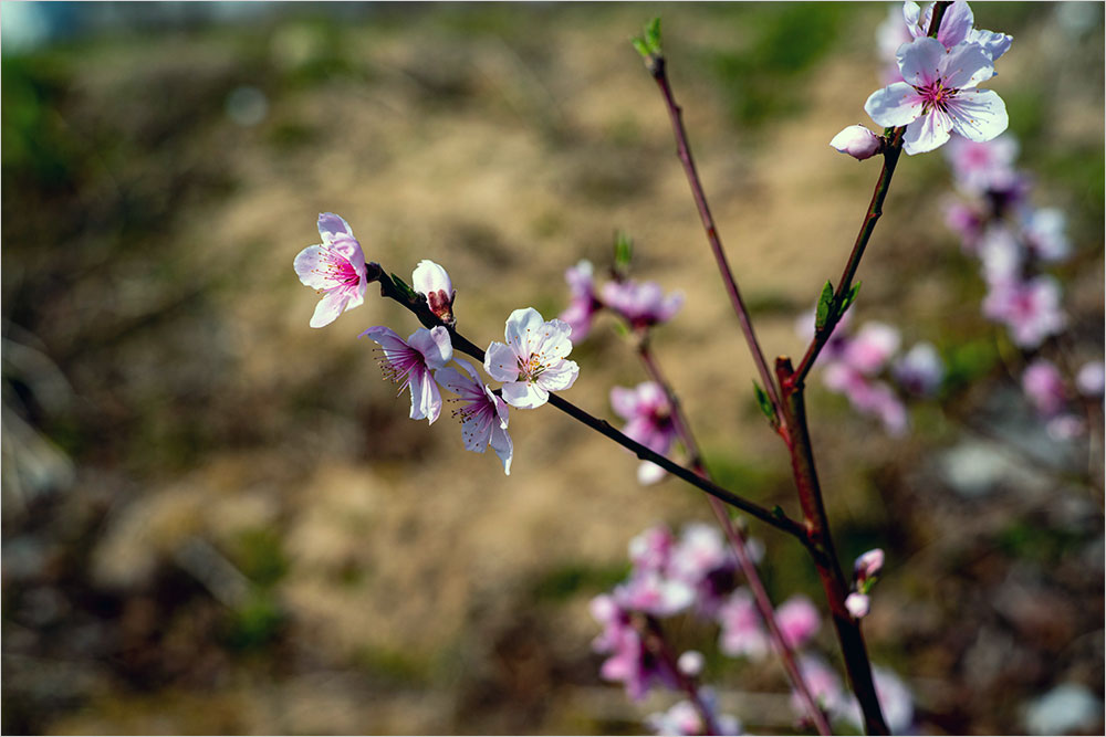 벌써 꽃망울을 터뜨릴 준비가 되었나 싶은데, 하루 이틀 사이에 산책길 주변은 짙어지는 분홍빛 도화원(桃花源)으로 바뀌어 버렸다. 정작 복숭아 과수원은 드물고, 대부분 산기슭이나 밭 주변에 한두 그루씩 서 있는 나무들이다. 살구꽃이 진 뒤의 상실감을 이 녀석들이 아주 충실히 메워주는 것이다.