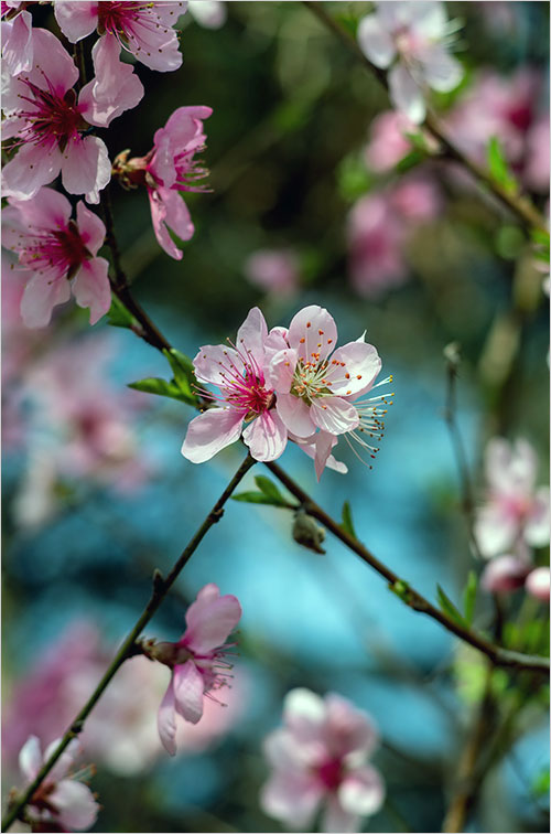 꽃술도 꽃잎이 흰빛일 때는 하얀 꽃술대에 주황빛 수술이 아름답다. 그러나 시간이 지나면서 꽃술대도 붉어지면서 전체적으로 붉은빛이 강해지는 것이다. 멀리서 바라보는 복사꽃이 분홍보다 더 강한 붉은 기를 띠는 이유다.
