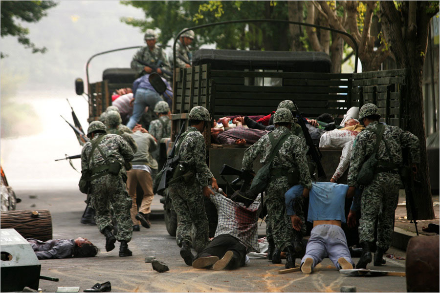 5월 20일, 계엄군은 광주와 외부를 연결하는 전화를 차단하여 광주시민을 완전히 고립시켰다. 광주역에서 발견된 시체 2구가 손수레에 실려 금남로에 나타나면서 광주시민의 분노는 임계점을 넘었다. 마침내 시민들은 군의 저지선을 넘었고, 계엄군은 이들을 향해 발포했다. 저격수의 조준 사격에 시민들이 쓰러지기 시작했다. 시내 병원은 이송된 환자와 시신으로 넘쳐났고 부상자가 늘어나자 병원 앞에는 주부 등 젊은 여성들이 헌혈하겠다며 달려왔다.