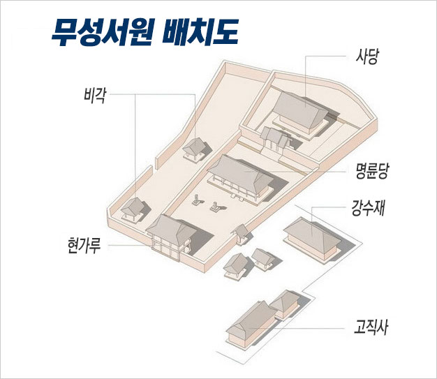 무성서원은 조선 중기의 성리학자 김인후(1510~1560)를 모신 장성의 필암(筆巖)서원, 임진왜란 때 호남 의병을 이끌고 금산싸움에서 순절한 고경명(1533~1592) 삼부자 등을 모신 광주의 포충사(褒忠祠)와 함께 서원철폐령에도 헐리지 않고 살아남은 서원이다.