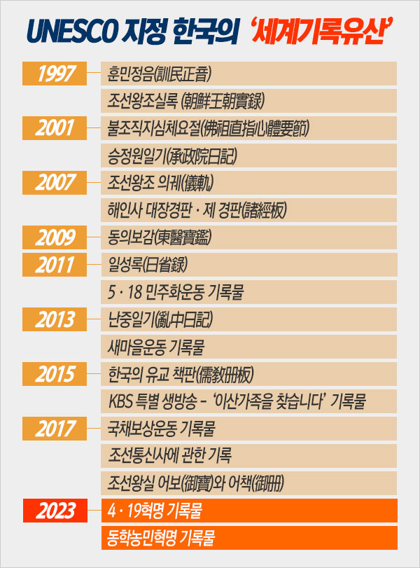 유네스코, ‘4·19혁명 기록물’과 ‘동학농민혁명 기록물’ 세계기록유산으로 등재 결정
