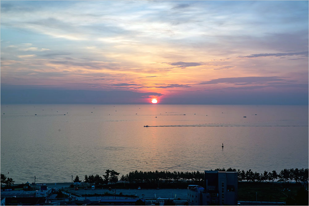 아들과 함께 잔 방에 바다 전망이 좋았던 모양이다. 아침에 그냥 누워서 뉴스를 보고 있는데, 아이가 창문을 열더니 해가 뜬다며 폰으로 사진을 찍기 시작했다. 예나 지금이나 해돋이나 해넘이 보는 거는 별로여서 아이에게 카메라로도 몇 장 찍어 두라고 주문했다. 나중에 아이가 찍은 사진을 보고, 한 장 찍어볼걸, 하고 잠깐 후회했다.
