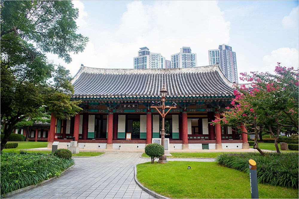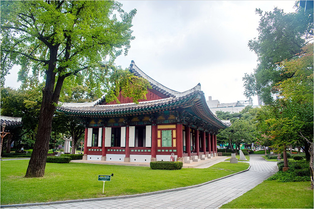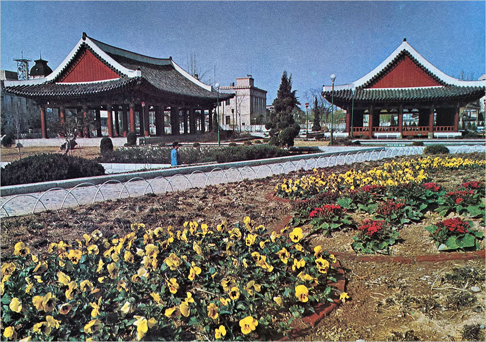 글을 쓰면서 자료를 찾다가 인터넷의 1971년에 찍은 중앙공원 사진(한국저작권위원회의 공유자료)을 보고 등허리가 서늘해졌다. 그야말로 70년대식으로 조경된 꽃밭 저편으로 덩그렇게 선 건축물은 바로 선화당과 징청각이었던 까닭이다. 지금과 다른 점은 건물의 외벽이 없어서 마치 누각처럼 보인다는 점일 뿐이다.