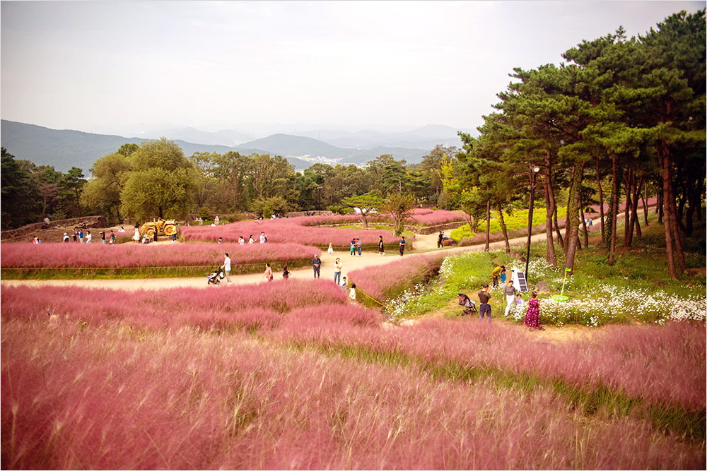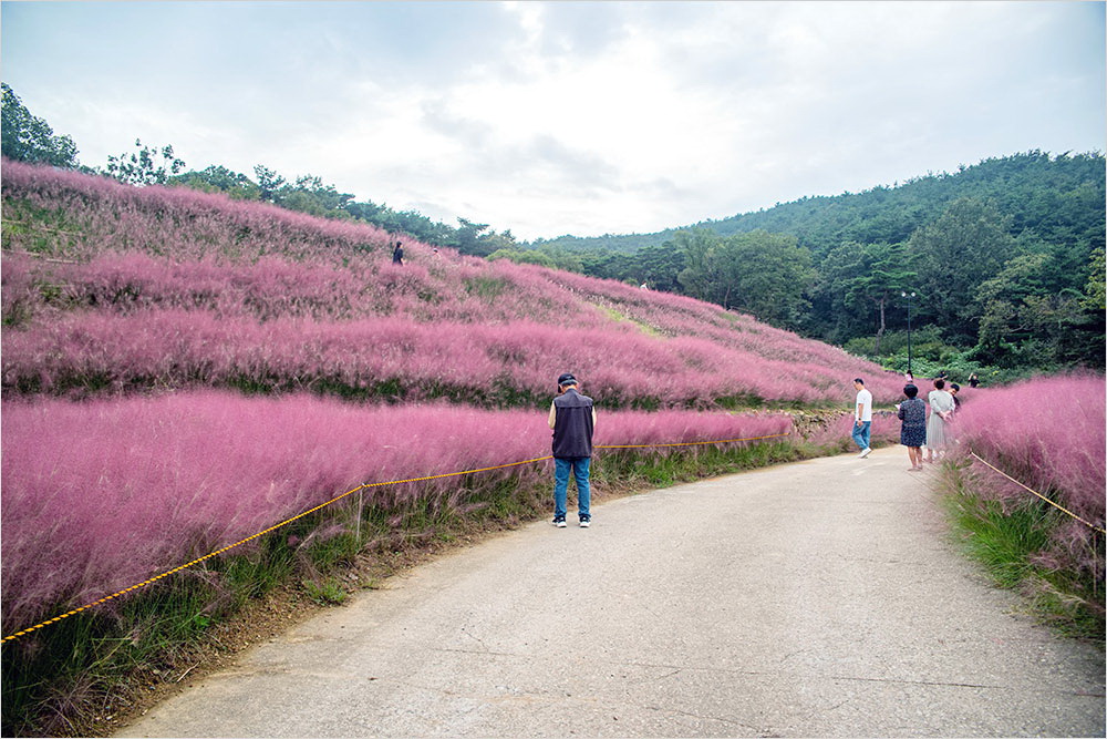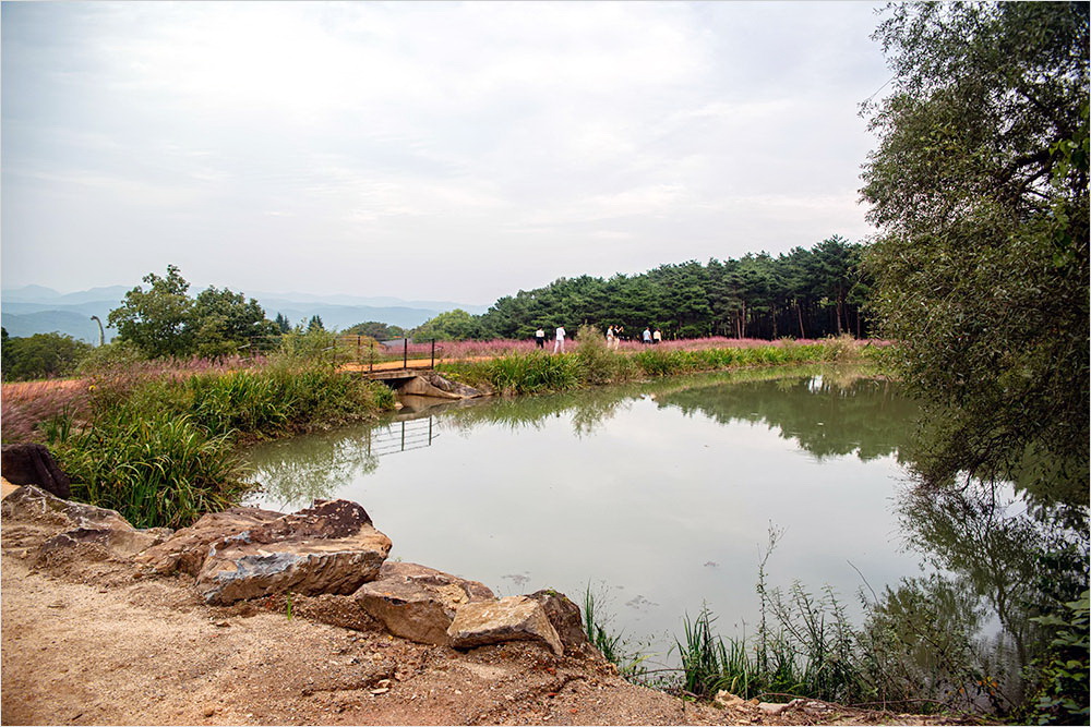 구미의 낙동강 체육공원에도 핑크뮬리가 심겨 있는데, 수피아의 그것은 견주기 어려울 만큼 규모가 크고 광범위했다. 사람들은 저마다 이 풀을 배경으로 사진을 찍고, 휴대전화로 그 풍경을 찍기에 바빴다. 핑크뮬리 언덕 위 연못 주위에 솔숲을 배경으로 맨발 걷기 황톳길이 만들어져 있었다.