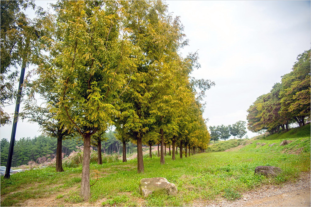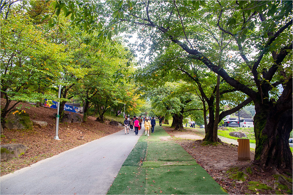 테마공원 가산수피아를 알게 된 것은 지난 8월, 가까운 데 맨발 걷기에 맞춤한 길이 없나 찾으면서다. 경상북도 나들이 블로그는 물론 칠곡군의 문화관광 사이트에서 명소로 소개하는 곳이었다. 가산수피아? 난생처음 듣는 곳인데, 거기 1.5km 황톳길이 펼쳐져 있다고 했다. 나는 이름의 ‘가산’만 보고 가산산성이 있는 동명면 쪽의 위락단지 안에 있는가 보다, 지레짐작하면서 언제 가족들 모이면 들르리라고 마음먹고 있었다.