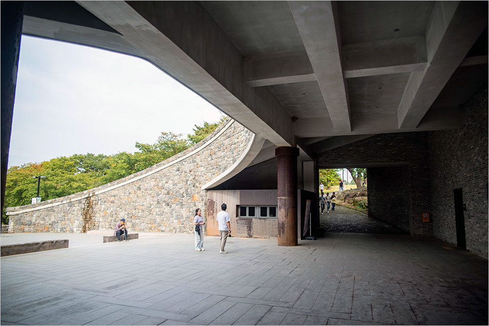 조금 더 오르면 언덕 아래 자연석 벽돌을 두른, 마치 지하 공간처럼 조성한 건물이 수피아 미술관이다. 테마공원과는 별도로 운영되는 미술관은 다양한 전시로 지역 미술의 활성화와 전시·교육·공연·체험 등 소통을 위한 체험 프로그램에도 힘쓰고 있다고 한다. 전시 중인 미디어 아트전 구경 대신에 우리는 미술관 오른쪽 옆의 카페에서 커피를 마셨다.