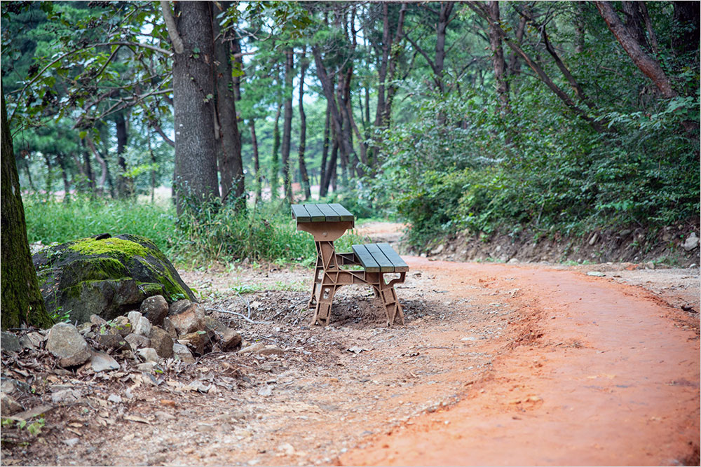 올라갈 때 그냥 스쳐 지났던 공룡 뜰을 가로질러서 내려오니 어느새 두 시간이 훌쩍 흘렀다. 같은 길인데도 올라갈 때와 내려올 때의 분위기와 느낌이 다르다. 나무와 숲이 연출해주는 오묘한 조화다. 가산수피아는 분명 인공이 가해진 시설물인데, 비교적 그 인위적 느낌이 덜 들고, 시설물과 숲이 아주 잘 어우러지고 있었다. 아니, 인공의 흔적 따위는 우람한 숲의 아우라가 무화해 버리는지 모른다.