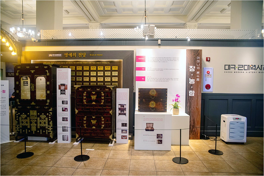 ‘구국의 정신’은 국채보상운동과 독립운동, 6·25전쟁, 2·28의거 등을 다루고, 대구의 문학, 미술, 음악을 다룬 ‘근대의 문화’, 계몽운동과 민족교육을 통한 근대교육의 산실을 다룬 ‘교육도시 대구’, 유물로 보는 향토 생활과 인력거, 라디오, 전화, 시계 등 향토 생활을 보여주는 ‘삶의 향기’, 근대 산업도시로서의 대구와 삼성의 성장을 다룬 ‘근대화의 산실’ 등이 전시되고 있었다. [관련 글 : 2·28 - 대구 고교생들, 이승만 선거 방해 공작에 맞서 일어서다]