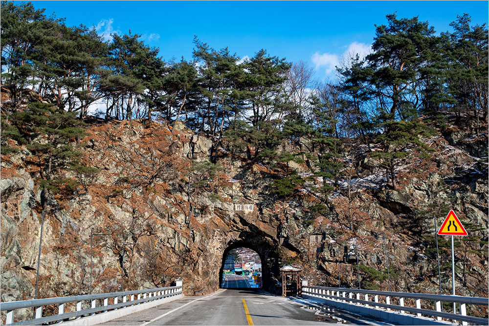 오는 길에 무주군 설천면 소천리에 있는 ‘나제통문(羅濟通門)’에 잠깐 들러 사진을 몇 장 찍었다. 삼국 시대 신라와 백제가 국경을 이루던 곳으로 ‘나제통문’이라 이름한 석굴 문이다. 삼국 시대의 유적이 아니라, 일제 강점기에 무주 지역에서 김천과 거창 지역으로 이어지는 신작로를 내면서 우마차가 통행할 수 있도록 뚫은 굴이라고 한다.