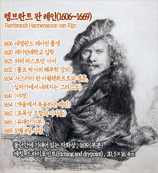 렘브란트(Rembrandt Harmenszoon van Rijn, 1606~1669)라면 미술 문외한도 이름쯤은 귀에 익힌 바로크 시대의 네덜란드 화가다. ‘빛의 화가’라고도 불리는 그는 일반적으로 유럽 미술사에서 가장 위대한 화가로 꼽히고 그가 그린 동시대의 초상화, 자화상, 성경 장면의 삽화는 그의 가장 위대한 창조적 업적으로 평가받는다.