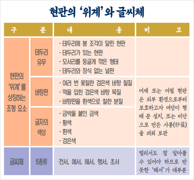 현판의 위계는 조형 요소별로 정해진다
