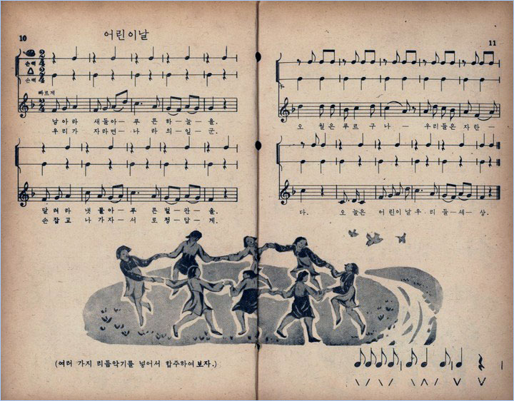어린이날 노래가 열 살 무렵의 내게도 좋은 노래라는 느낌을 준 이유는 아마 7·5조 변형의 외형률이 주는 안정감 덕분이 아니었는가 싶다. 동시에 푸른 하늘을 나는 ‘새’와 푸른 들판을 달리는 ‘냇물’로 비유되는 ‘어린이들의 세상’이라는 비유도 컸을 것이다. 아니, ‘새’와 ‘냇물’은 오월을 만끽하는 아이들 자신이 아니었던가.