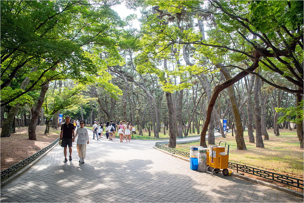 사람들은 고분 사이로 내어서 가꾼 통행로를 오가며 여기저기 흩어진 무덤의 봉분을 스쳐 지나가면서 쉬고, 잘 조경된 풍경을 배경으로 사진을 찍는다. 잡초 하나 없이 잘 관리된 매끄러운 잔디를 자랑하는 봉분 사이로 소나무, 단풍나무, 느티나무, 감나무, 모과나무, 배롱나무, 목련, 산수유, 대나무 등이 어우러진 풍경 속으로 거니는 것은 여느 공원과는 전혀 다른 느낌을 제공한다.