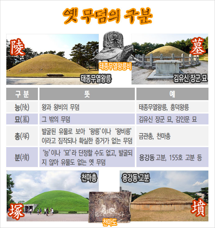 신라의 대표적인 무덤 형태인 천마총은 목관을 안치하고 그 위에 나무 덧널을 짠 후 주위와 윗부분을 돌로 쌓고, 물이 새어들지 못하게 진흙을 덮어 다지고 다시 그 위에 흙을 덮어 봉분을 만들어 마무리한, ‘돌무지덧널무덤’[적석목곽분(積石木槨墳)]이다.