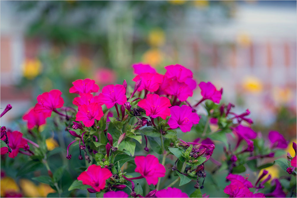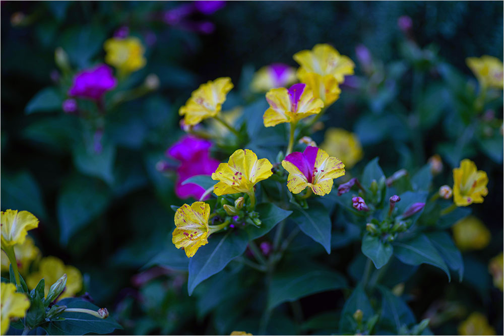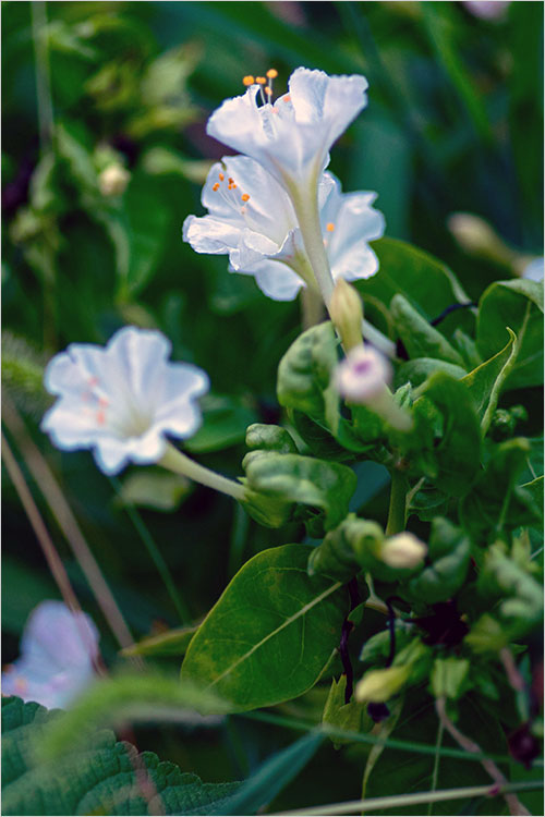 서양에서는 분꽃을, 오후 늦게 피고 다음 날 아침에 진다고 해서 ‘포 어클락 플라워(four o’clock flower)’라고도 한다. 이 글에서 쓴 사진은 모두 오후 7시를 전후해서 찍은 것이다. 색감은 화려하다 못해 농염하다고 해도 될 듯하다. 향기가 좋다고 하는데, 언제부터인가 후각 기능이 떨어져서 나는 향기를 따로 확인해 보지 못했다.
