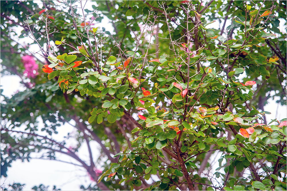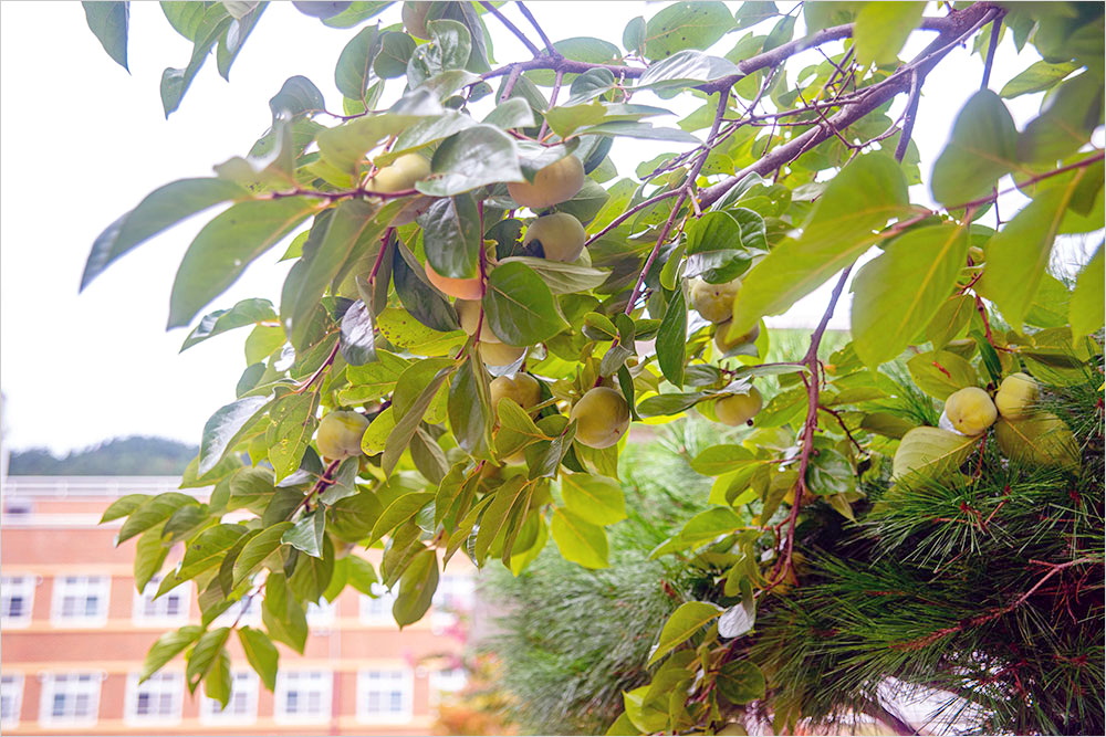 국기 게양대 근처의 배롱나무는 아직 꽃을 매달고 있지만, 아래쪽의 잎사귀부터 조금씩 물들기 시작하고 있었다. 감나무에는 주렁주렁 열린 감의 무제로 가지가 휘어질 정도다. 운동장 가녘의 키 작은 주목도 마치 속이 빈 단추 모양의 열매를 달았다. 그렇다, 시나브로 계절은 가을로 접어든 것이다.