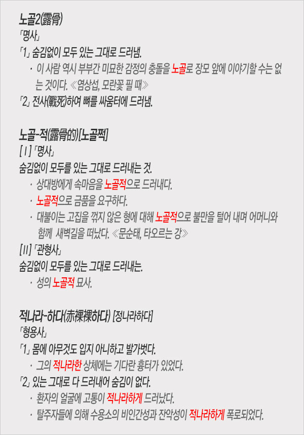 [낱말의 발견] ‘노골(露骨)’과 ‘적나라(赤裸裸)’