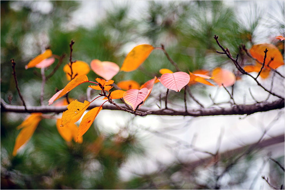 초등학교로 가는 길목의 이웃 아파트 울타리의 벚나무는 잎이 좋다. 품종에 따라서 다른 듯한데, 가을이 깊어지면 이내 잎이 지거나 우중충해지는 여는 벚나무 잎과 달리 이 벚나무 잎은 단풍이 들 때까지 온전한 모습을 유지할뿐더러 단풍도 꽤 곱게 드는 품종이다. 그 잎을 찍은 지 여러 해가 지났다. [관련 글 : 2022년 가을 풍경(2)]