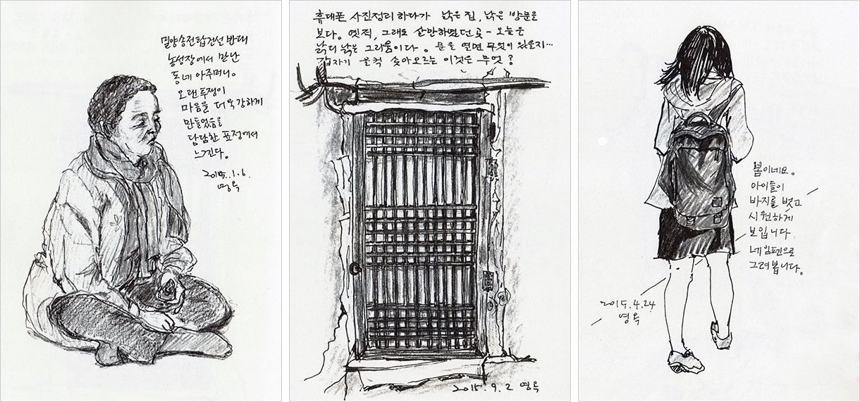 얼마 전 책상 옆 서가에 챙겨두었던 보랏빛 단행본 한권이 눈에 들어왔다. 꺼내 보고서야 그간 꽤 경황없이 살았다는 생각을 했다. 지난 2월 퇴임 모임에 참석한 선배가 전해준 조영옥 선생의 스케치와 글모음 <긴 망설임의 끝, 선택의 행복>이다.