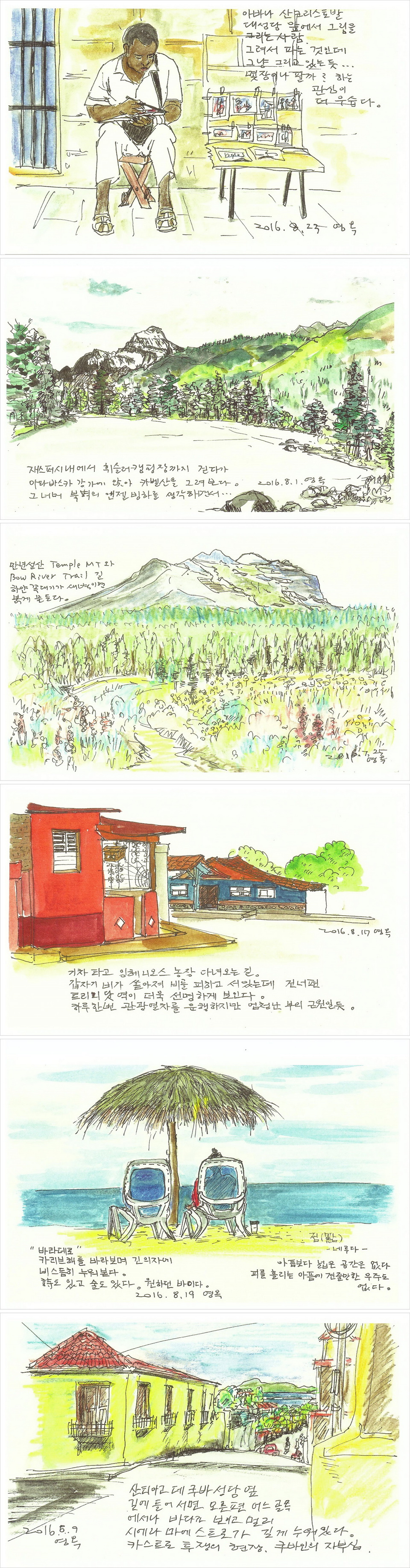 중학교 때 미술반이었는데 형편이 여의치 않아서 그림에서 멀어졌던 그이는 환갑, 진갑 지난 나이에 다시 그린 그림을 우리들 앞에 책으로 내놓은 것이다. 그것도 그였으니 가능한 선택이었을 것이다. 나는 최근에 그가 이 그림들로 전시회를 열고 있다는 소식을 듣고 나서 뒤늦게 책을 읽기 시작했다.