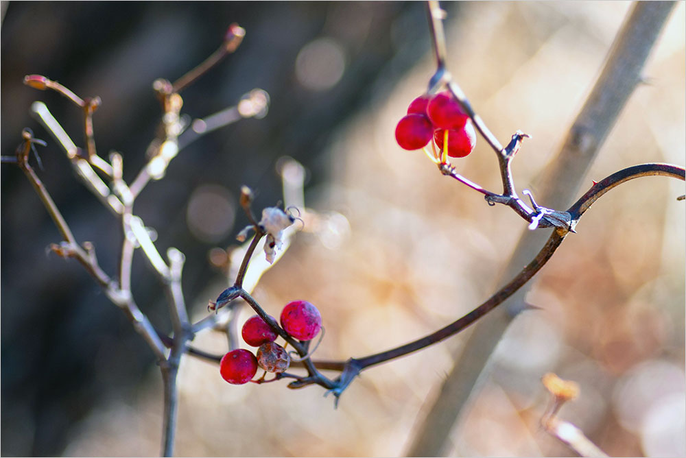 한동안 따뜻했던 날씨가 급변하며 며칠간 영하의 날씨가 이어졌다. 11월에도 여전히 온난한 날씨에 동네 중학교 울타리의 개나리가 꽃을 피우고, 초등학교 가는 길의 목련과, 산수유도 꽃눈이 생겨났다. 11월까지 꽃을 피우는 장미들도 더러 눈에 띈다. 열매들은 추위에 얼면서 쭈글쭈글해지고, 화사한 빛깔을 자랑하던 단풍잎도 바스러져 떨어지기 직전이다. [관련 글 : 2022년 11월, 만추의 장미]