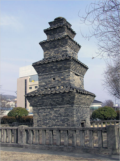 더 큰 실수, 아니 ‘몹쓸 짓’을 한 건 일제다. 탑과 지척에 중앙선 철길이 놓여 있으니 이는 대를 이어 걸출한 독립지사를 배출한 임청각 고성 이씨 집안의 내력을 못마땅하게 여긴 일제가 마당을 가로지르는 철길을 놓아 집안의 기를 끊고자 한 여파다. 덕분에 이천 년을 지켜온 벽돌탑은 철둑에 막힌 강을 간신히 굽어보며 밤낮으로 발치를 오가는 철마의 쇳소리를 들어야 하는데, 그게 탑의 보존에 얼마만 한 영향을 끼치는가는 물어보나 마나다.